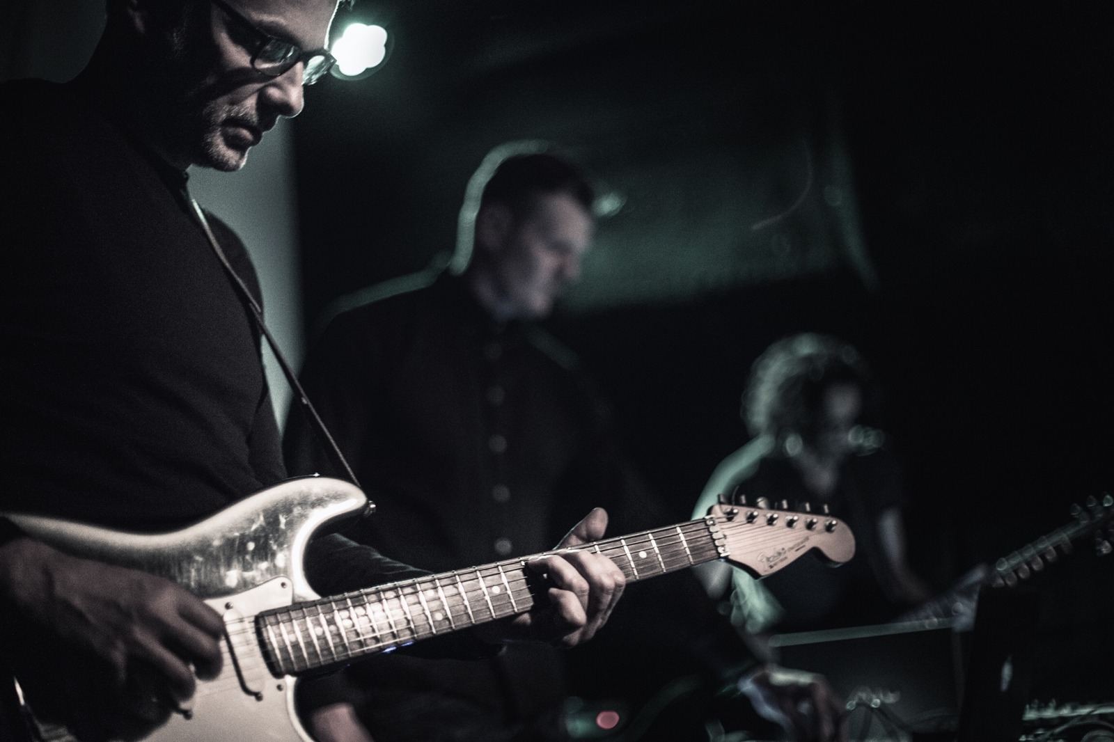 The line up is very simple: 1 DJ + 2 guitarists (with keyboards) . The Live set is pushed by 1 hour of film show on the stage