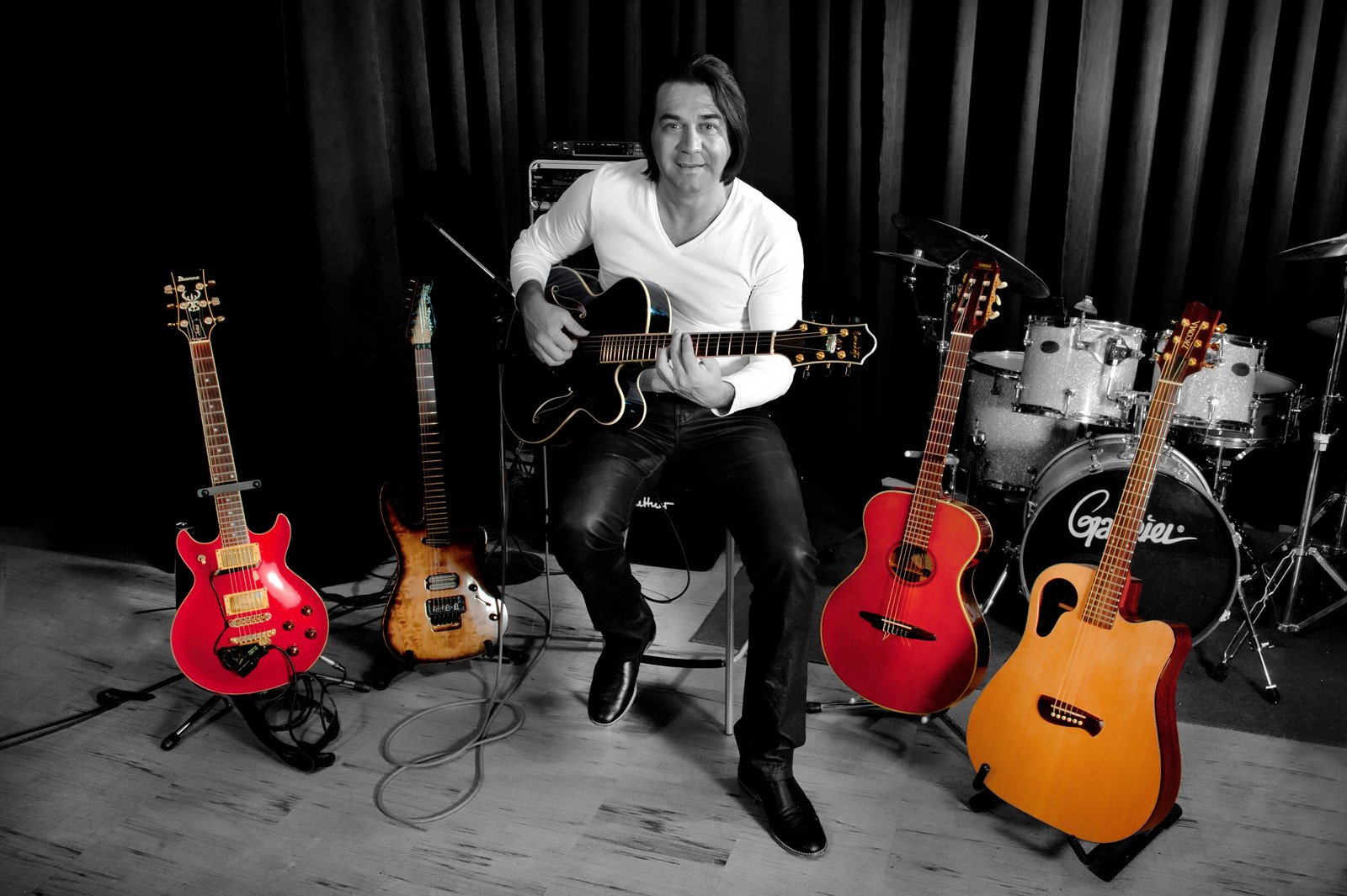 A BLUE NOTE RECORDS & BENEDETTO GUITARS ARTIST- COMPOSER - GUITARIST- EDUCATOR Lefteris Christofis is a Blue Note Artist whereas his last album “Nous Icons” was released by Blue Note Records, co -produced by the ‘7 times Grammy Award winner’ drummer Paul Wertico (Pat Metheny Group) and it had remarkable reviews from the media. He has performed with many top musicians from the UK, USA and Greek jazz scene and also with the drummer Paul Wertico, bassist Jeff Berlin and pianist Barbara Unger. He has collaborated as orchestrator with the saxophonist Chico Freeman -who has also recorded saxes on his last album –which is going to be released in 2014. He completed his studies at the Music Department of the Anglia University in Cambridge and lived in London. With his own “Cosmic Band” and as a member of the APU Jazz Orchestra performed in many venues and festivals. During his seven years of living in London he released his personal albums “Kalesma - Lefteris Christofis with British Friends” and “Mythoplasia”. As guitarist, he participated in the project ‘One Olympics’ of the Magnetics Poets which was presented in the Winter Olympics Games in Torino 2006. Since 2000, he is on the charge of the “Musical Ensembles & Improvisation” in Athens Music Hall and he also gives clinics concerning his personal project “From the Improvisation to Composition”. In 2010, he was endorsed by Benedetto Guitars and as a Benedetto Artist - he performed and demonstrated his extraordinary guitar Bravo Deluxe 40th Anniversary (http://benedettoguitars.com/artists/lefteris-christofis/) Since 2011, Lefteris Christofis is the artistic director of the educational organization Music Center Athens (MCA) (www.musicenter.gr). During 2013-14, he has started performing and presenting his new album with his new quartet LEFTERIS CHRISTOFIS & FABULOUS FOUR" featuring Dominique Di Piazza on bass, Jacques Marugg on vibraphone, Nikos Touliatos on drums.